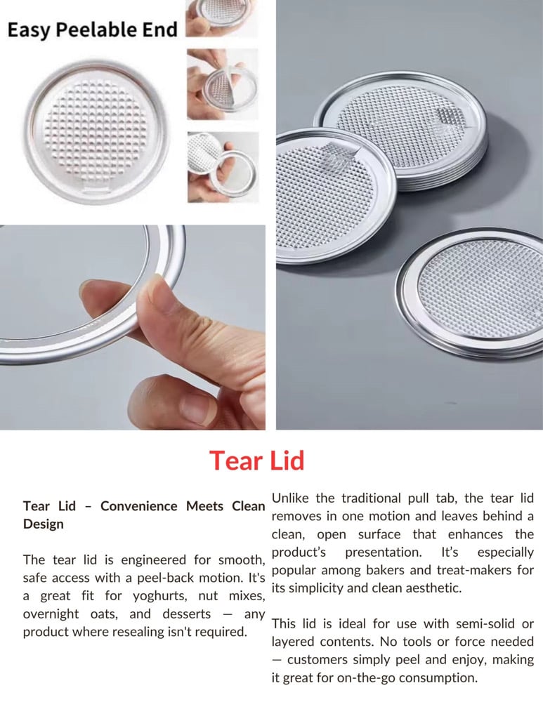 Simplify your packaging process with our complete transparent can bundle. This value-packed kit includes 200 pieces of premium clear cans and 200 matching lids, giving you everything you need to package your products efficiently. Choose your preferred seal: our convenient easy peel lids for a tamper-evident, user-friendly experience or our classic regular pull lids for a secure, reusable closure.